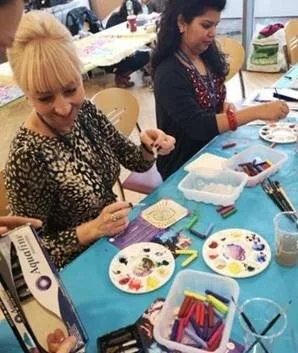 The inspiring Arts & Business partnership involving Citi Bank, Arts & Business and Arts Care opened a wonderful opportunity for our Arts Care Artists to set up ‘drop in’ art tables in the canteen area in Citi Bank on World Mental Health Day 2019. It was so encouraging to see so many staff visiting the tables and participate in making their own art. Some of the main themes to come from conversations with participants on the day focused on feeling ‘more relaxed’, ‘less stressed,’ ‘more motivated to go back to work in the afternoon’, ‘high levels of enjoyment and fun with colleagues,’ all contributing factors to support mental health and well-being and foster a happy and healthy workforce.