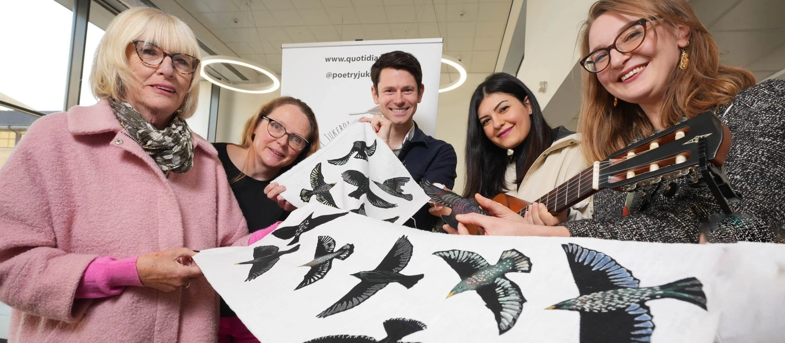 The vision was to bring high-quality accessible art to the public in a novel way that would reinforce that public transport hubs, art, beauty and the environment belong to everyone. The Poetry Lab took place in Lanyon Place train station and involved a participatory public art project, daily performances in the station and the launch of an augmented reality app called The Pop-Up Poet. Moyra Donaldson was commissioned to write a poem about the starling murmurations that used to be such a memorable part of the Belfast skyline at the Albert Bridge near Lanyon Place station, and from that an augmented poetry reading was created. Artist Una Hickey was able to involve a diverse range of local groups, as well as travellers passing through the station, to create a collaborative art installation based on the murmuration.